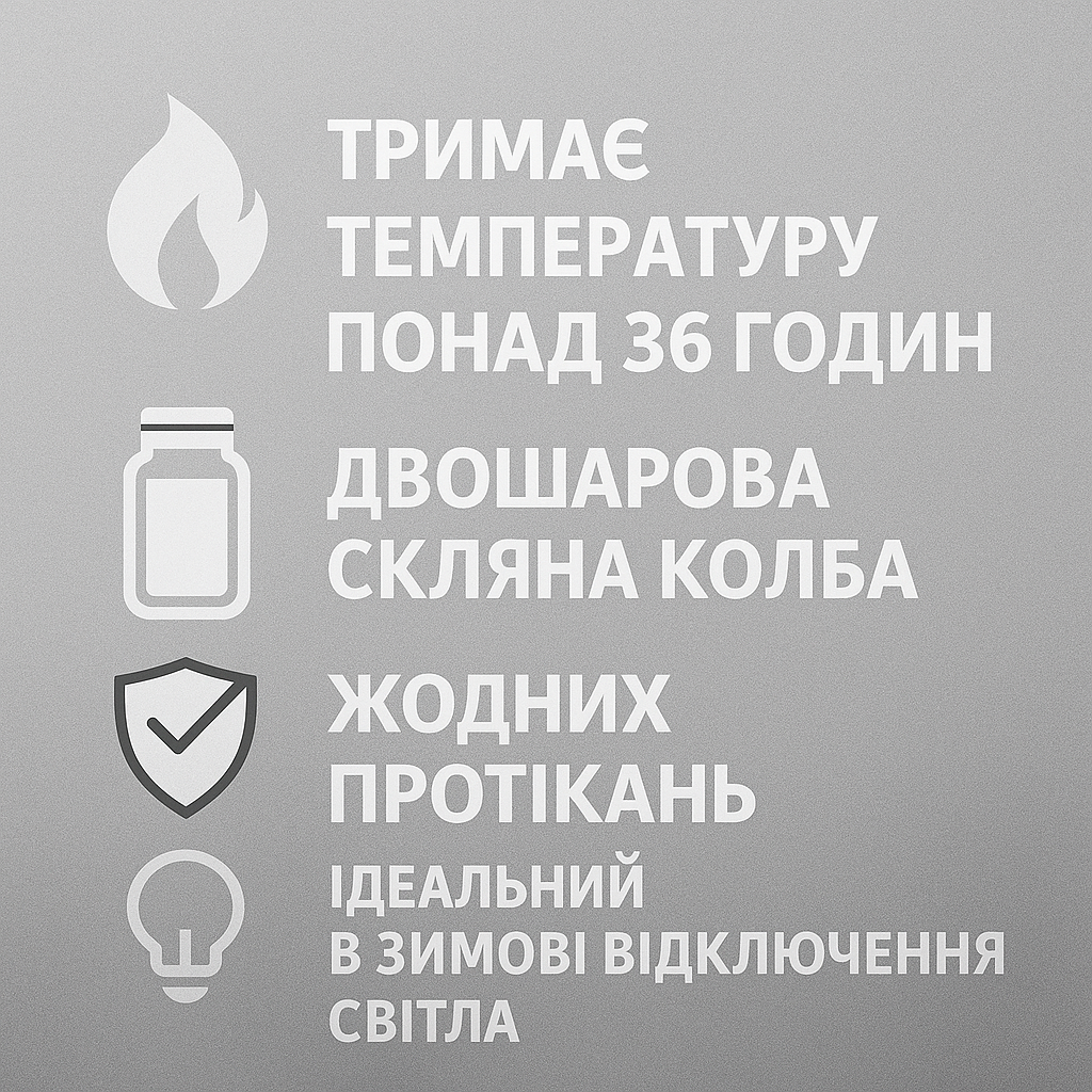 У нас у селі часті відключення світла. Я вже звикла, що чай або суп теплим не збережеш. А цей термос — просто знахідка. Заварила чай зранку — і навіть увечері він теплий. Дуже рятує, коли нема електрики. Навіть внучка бере з собою у школу.